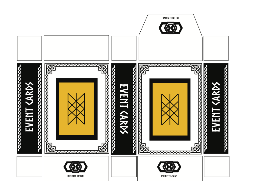 The images below are my contributions to a group assignment where I was responsible for the event card packaging and some graphics.